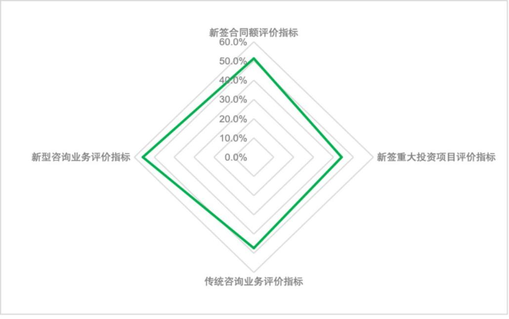 工程咨詢機(jī)構(gòu)經(jīng)營狀況分指數(shù)包括本單位新簽合同、本單位新簽重大投資項目、本單位傳統(tǒng)咨詢業(yè)務(wù)項目、本單位新型咨詢業(yè)務(wù)項目4個具體評價指標(biāo)。其中本單位新簽合同評價指數(shù)為51.3%,本單位新型咨詢業(yè)務(wù)項目評價指數(shù)為55.7%。反映參調(diào)單位三季度業(yè)務(wù)量持續(xù)增加,三季度的業(yè)務(wù)增長主要以新型咨詢業(yè)務(wù)為主。