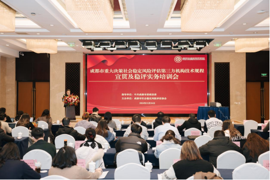 為做好新形勢下重大決策社會穩(wěn)定風險評估工作,進一步提升全市第三方機構社會穩(wěn)定風險評估工作質(zhì)效,成都市社會穩(wěn)定風險評估協(xié)會于2024年12月26日組織開展《成都市重大決策社會穩(wěn)定風險評估第三方機構技術規(guī)程(2024年版)》(下稱“《技術規(guī)程》”)宣貫及穩(wěn)評實務培訓會。市委政法委有關負責同志、協(xié)會領導及會員單位穩(wěn)評從業(yè)人員共計180余人參訓。