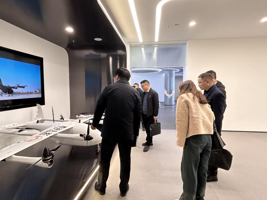 在沃飛長空新落成的企業(yè)展廳,調研組深度體驗了智能飛行器、無人機系統(tǒng)等前沿科技成果,系統(tǒng)了解低空飛行領域從技術研發(fā)到商業(yè)應用的全鏈條創(chuàng)新實踐。沃飛長空副總裁兼首席公共關系官肖前志重點介紹了企業(yè)在eVTOL(電動垂直起降飛行器)、城市空中交通等領域的突破性進展。