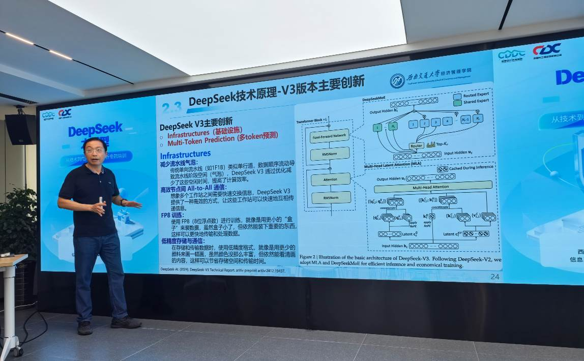 在數(shù)字化浪潮席卷全球的今天,人工智能正以前所未有的速度重塑各行各業(yè)。7月8日,由公司主辦的“DeepSeek大模型——從技術(shù)到應(yīng)用的全面解析”專題培訓(xùn)在五樓會(huì)議室成功舉行。本次培訓(xùn)特邀西南交通大學(xué)經(jīng)濟(jì)管理學(xué)院信息系統(tǒng)與運(yùn)營(yíng)管理系教授、博士生導(dǎo)師徐進(jìn)擔(dān)任主講,公司領(lǐng)導(dǎo)及技術(shù)骨干齊聚一堂,共同探索人工智能大模型賦能工程咨詢行業(yè)的前沿趨勢(shì)與實(shí)踐路徑。
