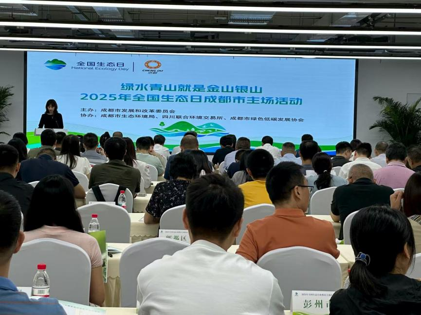 2025年8月15日,以“綠水青山就是金山銀山”為主題的全國生態(tài)日成都市主場活動在市民營經濟發(fā)展促進中心成功舉辦。本次活動由成都市發(fā)展改革委主辦,成都市生態(tài)環(huán)境局、四川聯(lián)合環(huán)境交易所、成都市綠色低碳發(fā)展協(xié)會協(xié)辦。成都市發(fā)展改革委、市生態(tài)環(huán)境局等市級相關部門、區(qū)(市)縣、行業(yè)協(xié)會代表等80余人參會。