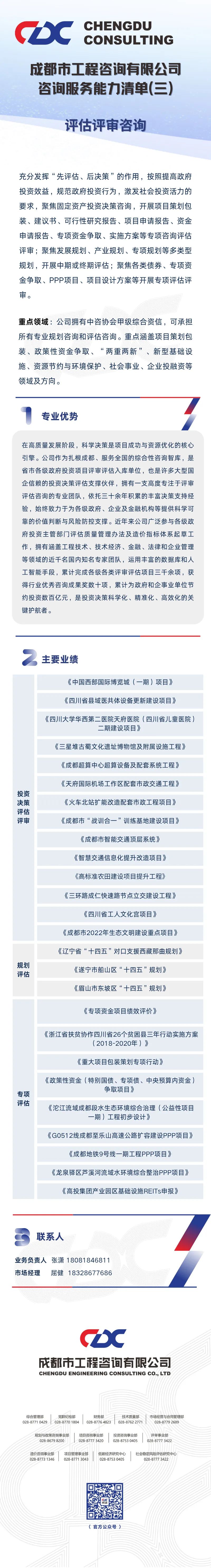近日,成都市工程咨詢有限公司成功入選成都經開國投集團有限公司“2025年度-2028年度中介服務機構庫一項目建議書(可行性研究報告)編制(不含市場經營類項目建議書、可研)”咨詢機構名單,將在新一輪服務周期中為區(qū)域高質量發(fā)展提供優(yōu)質決策支撐。作為成都龍泉驛區(qū)(成都經開區(qū))城市建設和產業(yè)發(fā)展的核心平臺與主力軍,經開國投集團深度融入先進制造業(yè)高地和現代化品質城區(qū)建設大局,在完善區(qū)...