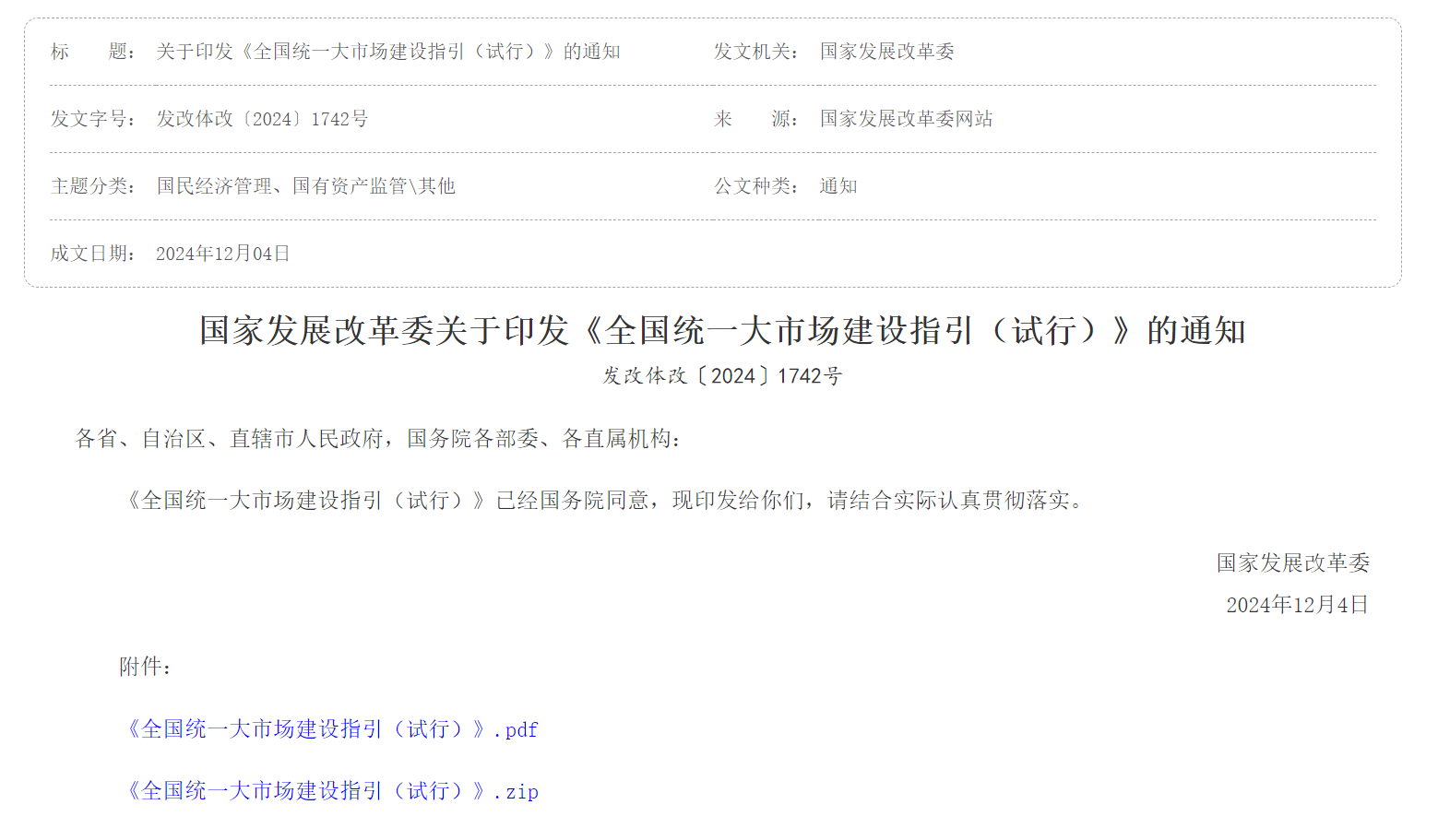 各省、自治區(qū)、直轄市人民政府,國務(wù)院各部委、各直屬機構(gòu):《全國統(tǒng)一大市場建設(shè)指引(試行)》已經(jīng)國務(wù)院同意,現(xiàn)印發(fā)給你們,請結(jié)合實際認真貫徹落實。